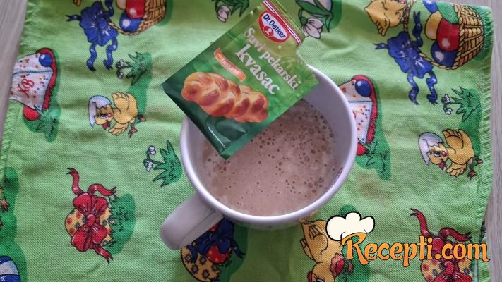 Kvasac potopiti u mlaku vodu i dodati kašičicu šećera.