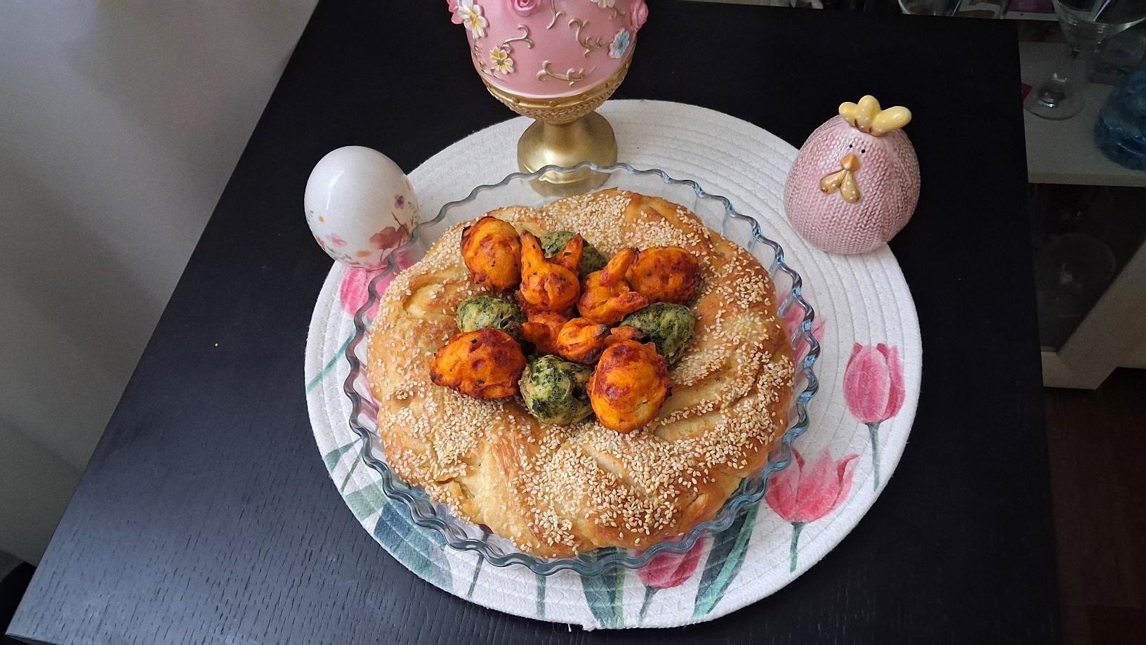 Jednostavna, laka i šarena pogača! Testo je veoma ukusno i ako je bez jaja i mleka, pa pošto za Uskrs ima puno kuvanih jaja, odlično će prijati!