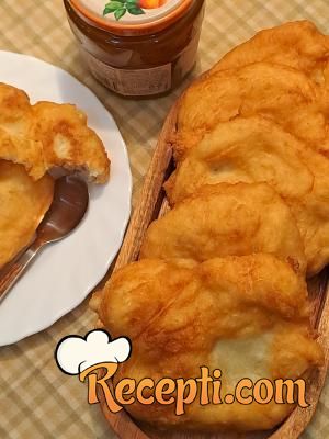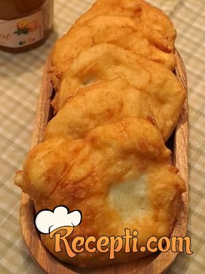 Testo premesiti špatulom još jednom, pa ponovo ostaviti da opet naraste. U manju šerpicu sipati ulje oko 2 cm visine i zagrejati na srednjoj temperaturi. Nauljenim rukama uzimati testo, malo ga rastanjiti i pržiti u zagrejanom ulju.