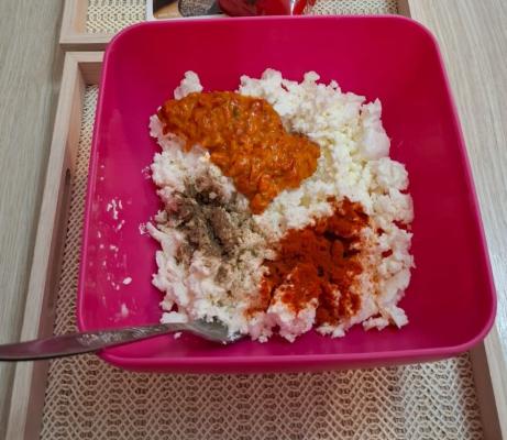 Tvrđi sir, koji je napravljen od mešavine ovčijeg i kozijeg mleka, usitniti viljuškom i u njega dodati ajvar, alevu papriku, biber i malo čilija (nije potreban, ako je ajvar ljut). Nije potrebna nikakva dodatna masnoća.