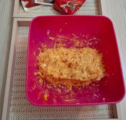 Ova salata, ili namaz, se jako lepo slaže sa slanim krekerima. Prijatno!