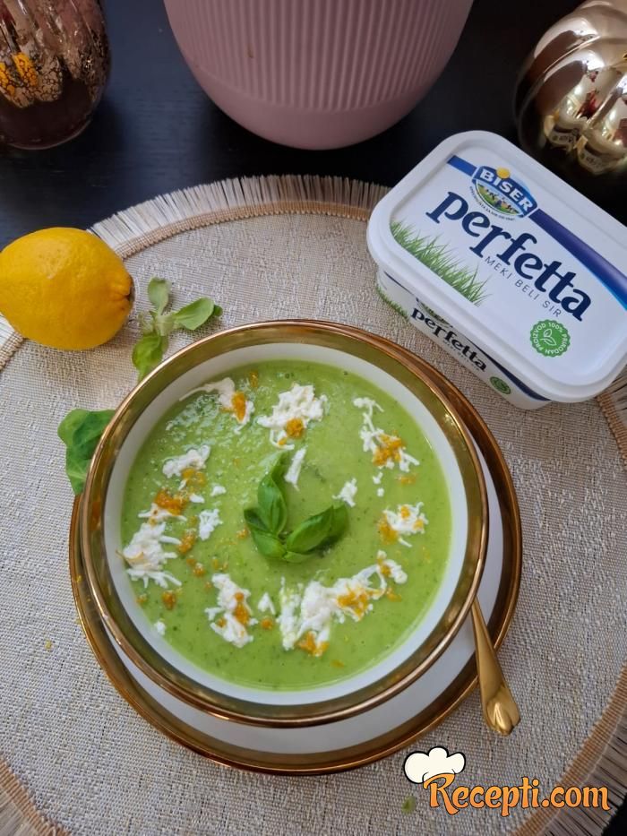 Skloniti sa ringle i izblendati potaž, ili mutiti štapnim mikserom, dok ne postane kremast. Servirati u dubljim tanjirima i preko izmrviti feta sir i narendati koricu limuna.