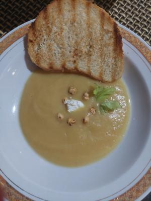 Voda se po potrebi doliva. Kada je skuvano skiniti s vatre. Ručnim mikserom izmiksati supu. Gustina zavisi od količine vode.