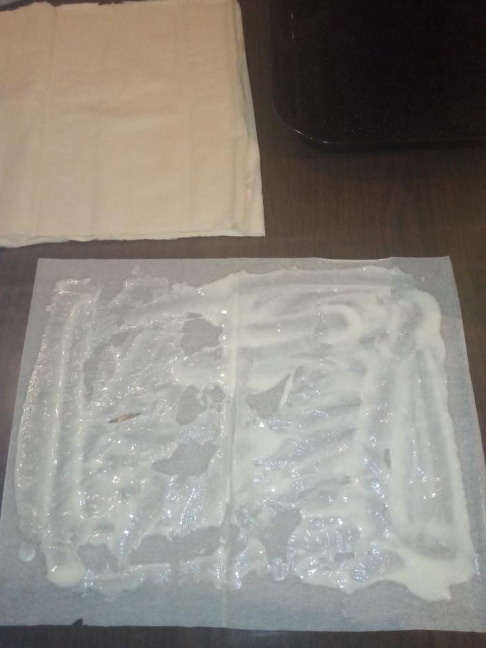 Uzeti jednu koru, celu koru premazati sa 3-4 kašike fila.