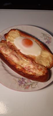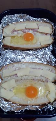 Na jednu polovinu kifle stavite razbijeno jaje, a na drugu naseckanu salamu ili suhomesnato, može i slaninica.