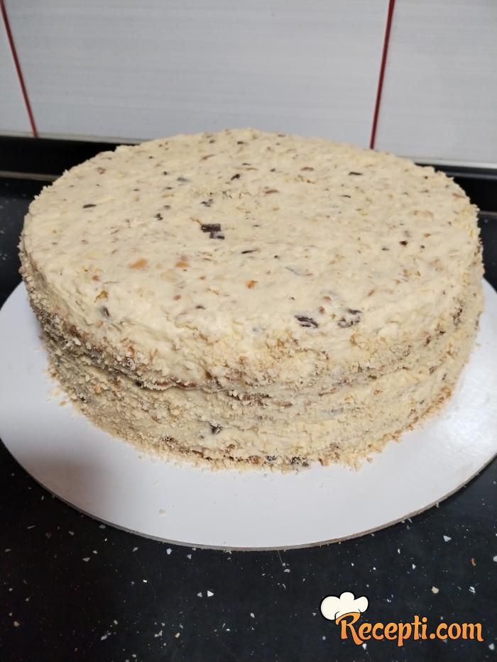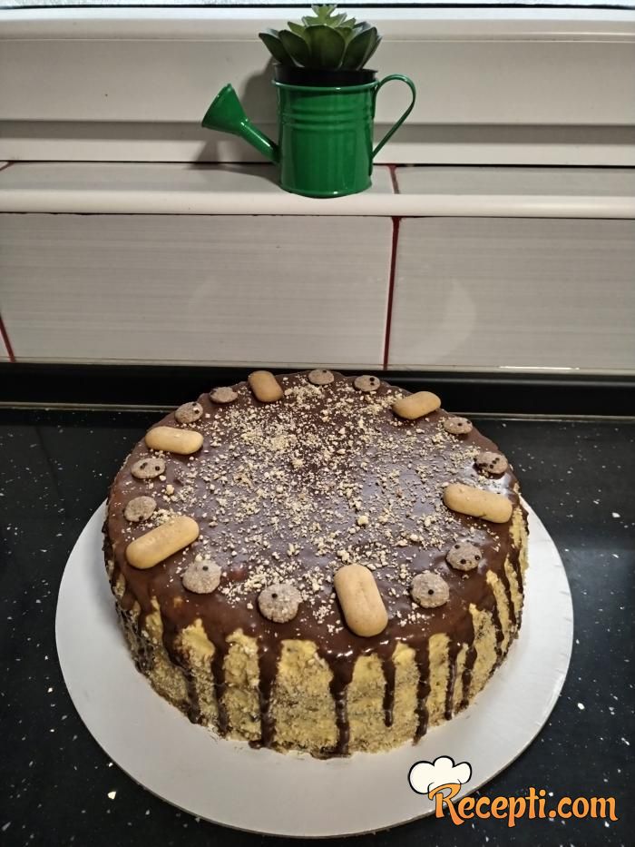 Ako se odlučite za glazuru 100 g čokolade otopite na tihoj vatri sa 5 kašika ulja i time prelijte tortu. Rashladite je, isecite na parčad i poslužite.