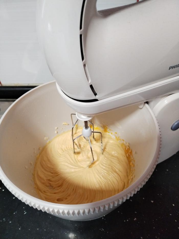 Umutite maslac sa šećerom u prahu, dodajte žumanca.