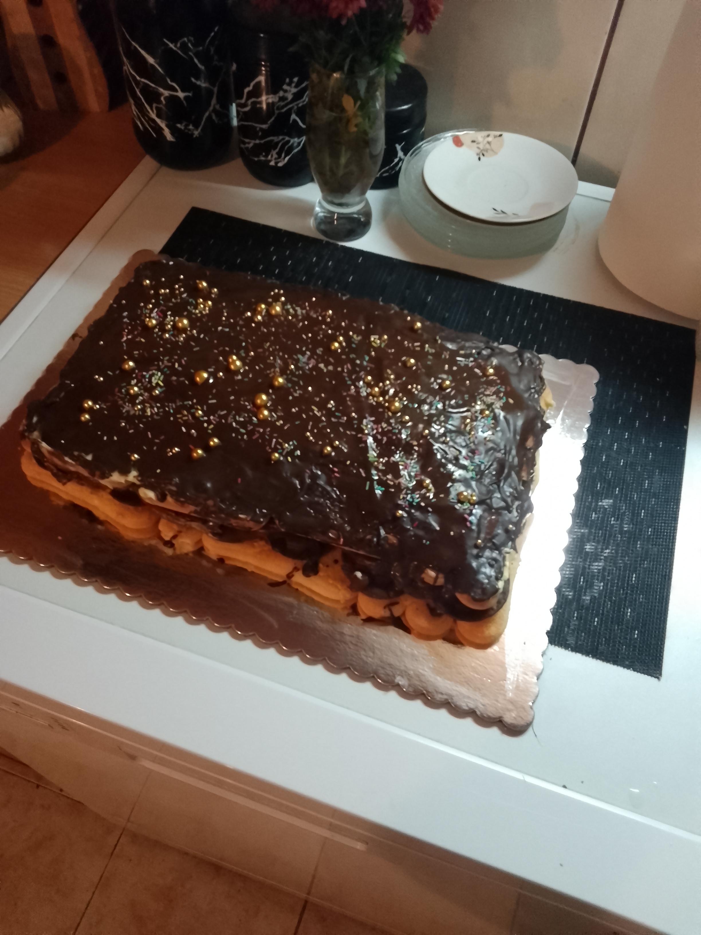 Otopiti čokoladu na ulju, premazati tortu i ukrasiti sa mrvicama. Prijatno!