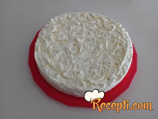 Šlag krem umutiti po uputstvu sa kesice i nafilovati tortu.