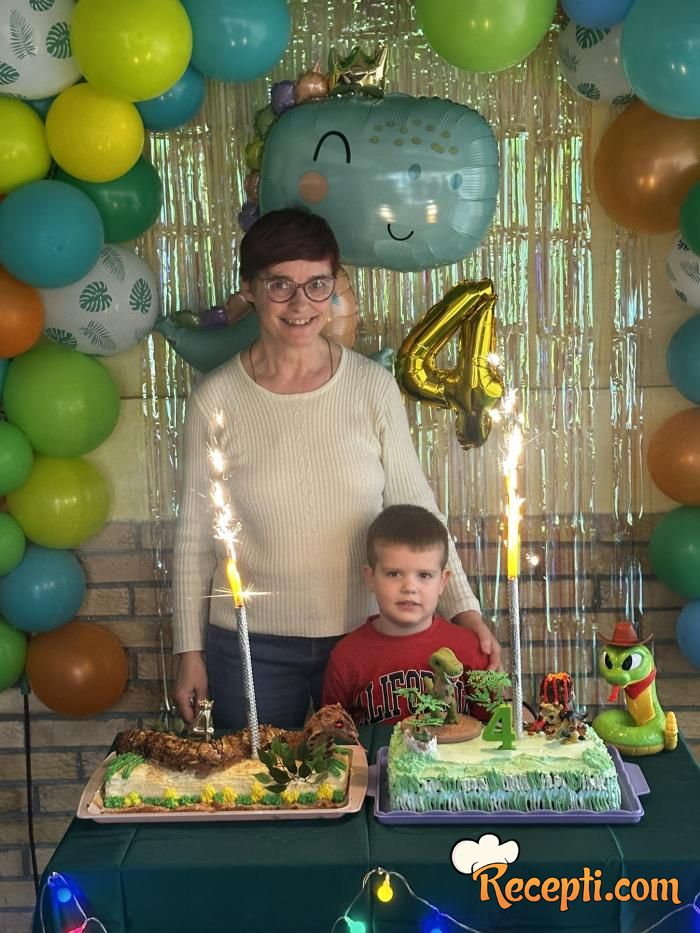 Ovu sam tortu pravila unuku Petru za njegov 4. rođendan. Torta jeste malo zahtevna, ali je veoma ukusna i velika, pa za ovakve svečane prilike se treba potruditi. Posebno baka koja zna da njen unuk obožava čokoladu, ljubi ga baka.