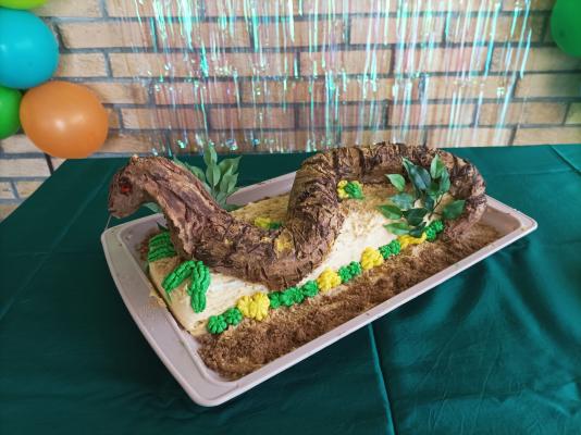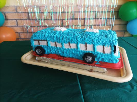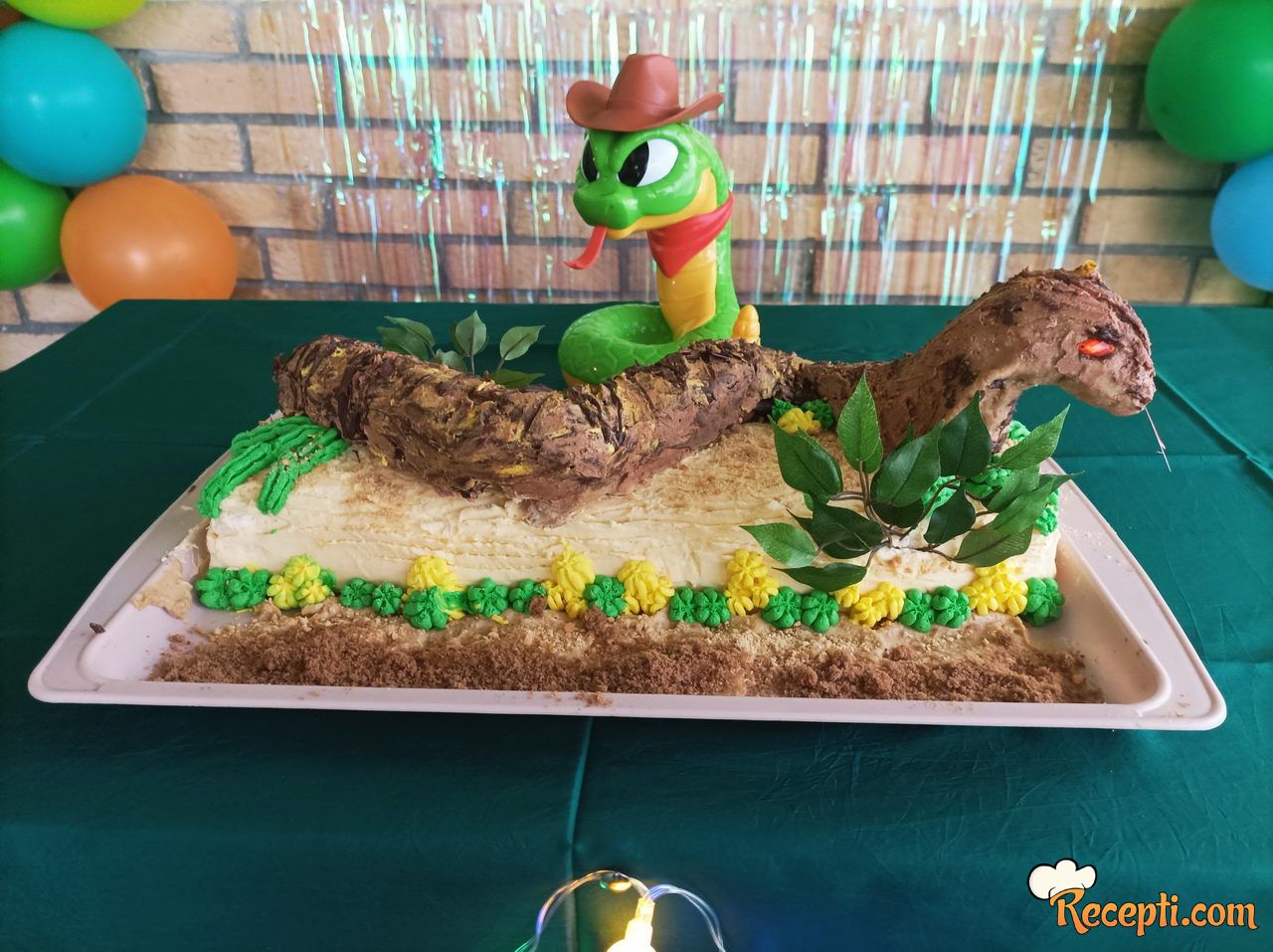 Petrova želja je bila da mu ja napravim tortu sa dinosaurusima, a druga baka tortu sa zmijom i autobus tortu (autobus torta je sa gotovim Vincini korama - Čoko moko torta, recept za nju imate na portalu). Ne mogu da vam opišem tu Petrovu radost, kada je otvorio frižider i video torte. Sav naš trud se "istopio" samo pod tim jednim njegovim osmehom.