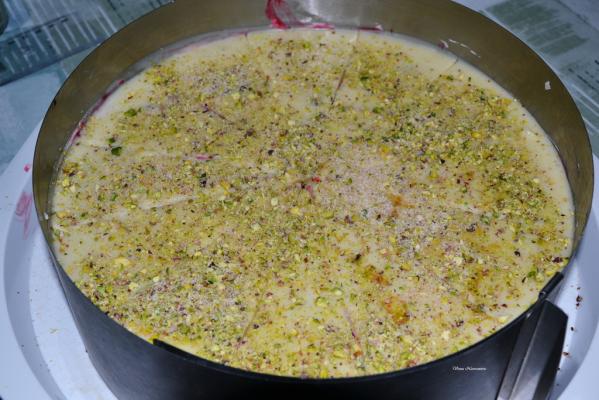 Na internetu sam naišla na recept Snežna torta i sačuvala sam ga. Što sam ga više čitala to sam dobijala sve bolje ideje kako da napravim ovu tortu. Imam predivne recepte za lagane podloge za cheescake te sam odlučila da jednu od njih iskoristim za izradu ove torte. U prodavnici zdrave hrane sam naišla na džem od šumskih kupina koji sam odmah kupila za moj cheescake. I tako malo po malo odstupila sam od orginalnog recepta 100%, ali je u svakom slučaju bilo dobro idejno rešenje, a svi su prijatelji pohvalili moj cheescake. U podlogu sam dodala 50 g pistaćija i 50 g pinjola, a u svakom slučaju svako može dodati orašaste plodove koje voli.