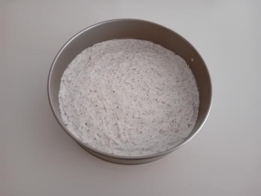 Spoljašnji deo torte premazati filom. Dekorisati po svom izboru (posula sam mlevenim orasima). Ostaviti u frižider da odstoji par sati (najbolje je da prenoći).