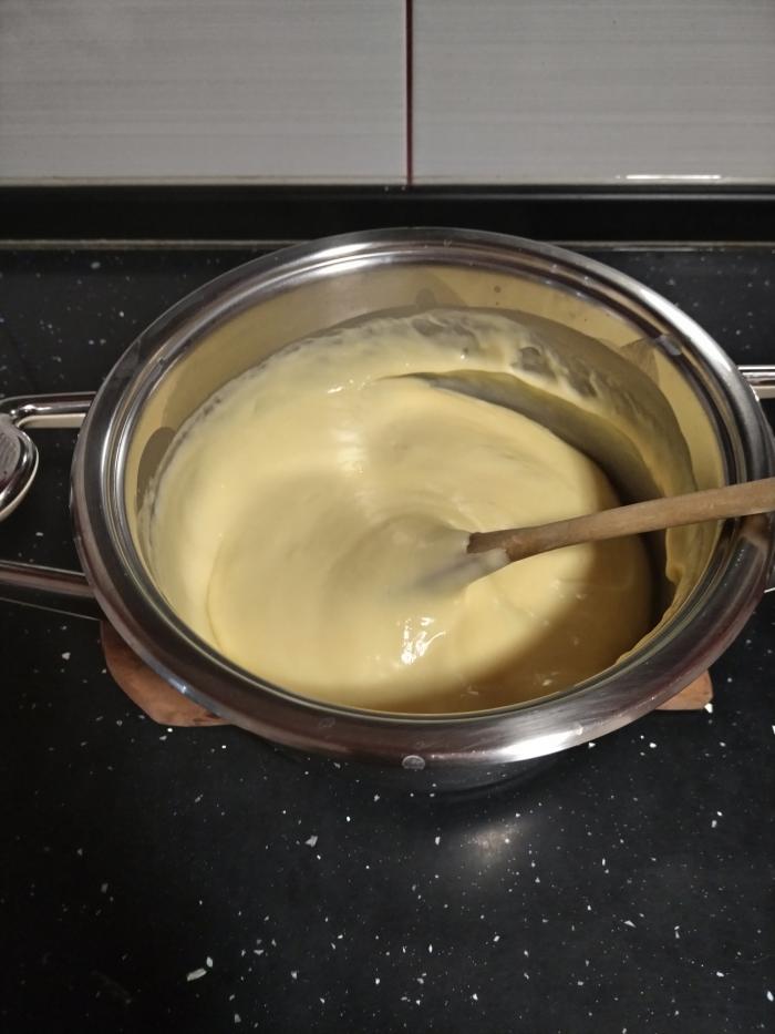 Preko džema stavite 1/2 žute kreme.