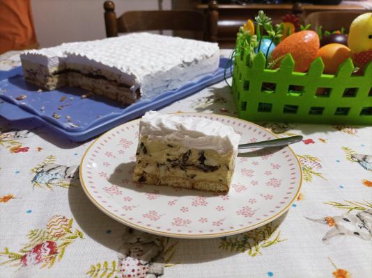 Veoma ukusna torta koja je jednostavna za pripremu, brzo se sprema (ne računajući vreme hlađenja), pogodna za veća slavlja zbog veličine, a ukus je takav da ne možete ostati na jednom parčetu. Tortu sam spremala po receptu Valentine Mašković.